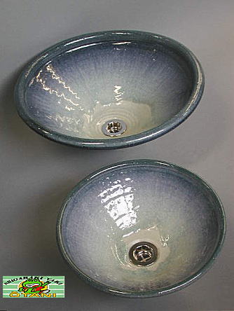 は排水金具中心に向かってガラス釉薬が流れている小波をイメージです。