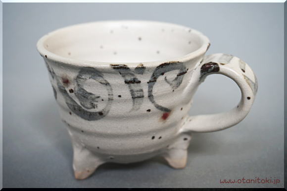 南天と唐草紋様で縁起が良い三つ足マグカップです