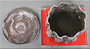 ■茶香炉の香りが出る丸穴、ローソクを焚いているところです ![]() ![]() この凸凹の縁もちゃんと意味があるんです。それは火の通りを良くするんです! ![]() ■底の部分 表面の凸凹とザラツキの感じがお気に入りです、底の部分はツルツル。 ロウソクを入れる中は手もスッポリ入るので使いやすい!! ![]() ■茶香炉の本体部分 安定したカタチ。CDと比較。丸い穴がぽつりぽつり開いている〜 大きいの、小さいの。 |