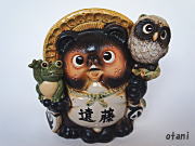 蛙と梟持ち狸の拡大画像