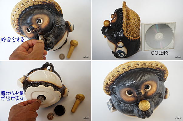 | ●狸の底からお金が出せます | 狸を上から見たところ | |